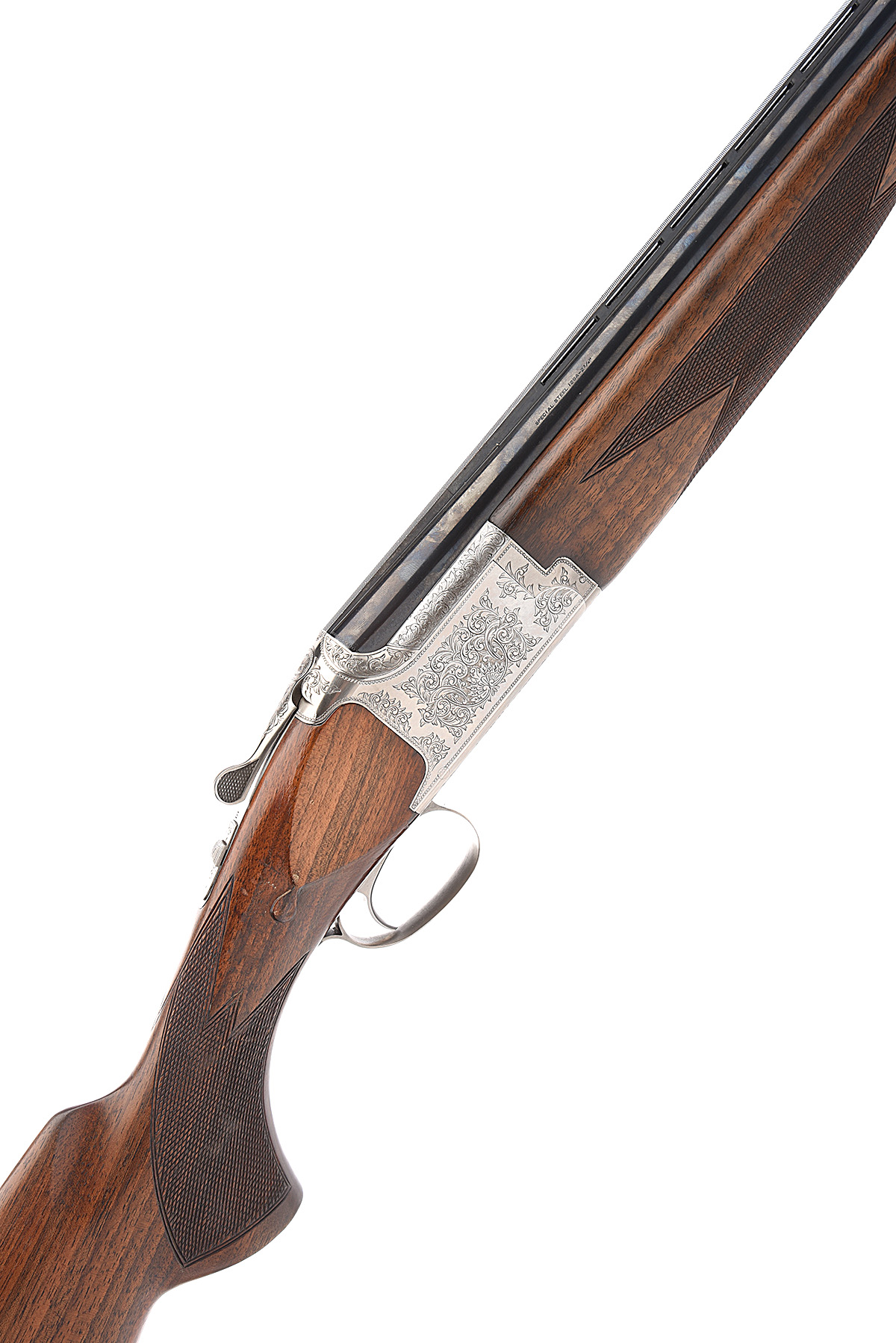 B.C. MIROKU 12-BORE 'MODEL 7000 GF-III' SINGLE-TRIGGER OVER AND UNDER EJECTOR, serial no. 85207PW, for 1984, 28in. nitro reproved barrels, 6mm ventilated matt top-rib (dented), 2 3/4in. chambers, multichokes (no spares), hold-open toplever, automatic safety with integral barrel selector switch, border and acanthus scroll engraving, 14 1/4in. pistolgrip stock including buttplate, weight 7lb. 1oz.