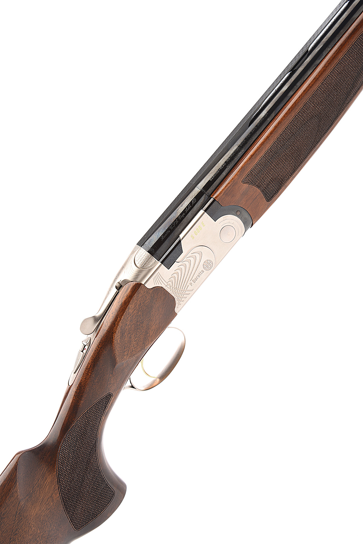 P. BERETTA 12-BORE (3IN.) 'S 686 E' SINGLE-TRIGGER OVER AND UNDER EJECTOR, serial no. N86742B, dated 2001, 30in. nitro barrels with 8mm ventilated matt top-rib, 3in. chambers, multichokes (with spares), hold-open toplever, manual safety with integral barrel selector switch, gold-washed single trigger, satin finish with geometric designs with the model designation gold-inlaid, 14 1/4in pistolgrip stock including 5/8in. rubber recoil pad, weight 7lb. 14oz., in its makers universal case