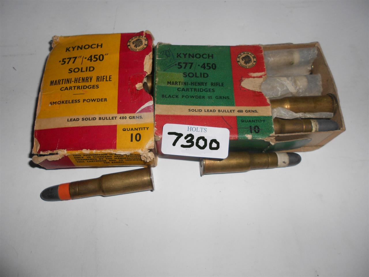 20 ROUNDS .577/450 AMMUNITION BY KYNOCH, 10 RED AND 10 WHITE, SOLID LEAD BULLET, Please be advised that cartridges/ammunition, primers, primed cases, blanks and percussion caps cannot be sent to you by post or carrier. If you wish, you can book a collection at one of our regional valuation days, or collect from our offices at PE31 6HA in Norfolk