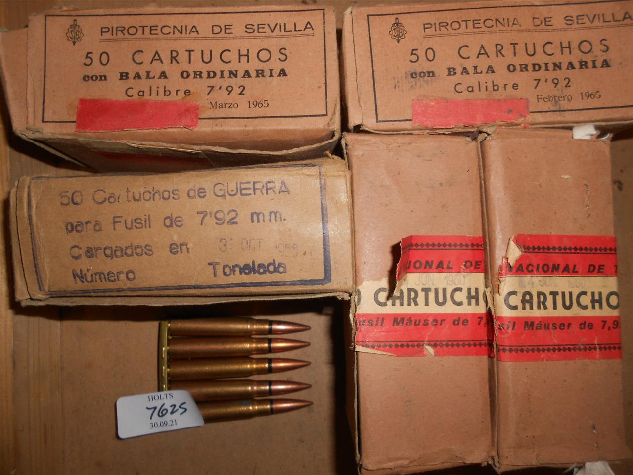 250 ROUNDS 7.92 X 57 (8mm MAUSER) AMMUNITION, SPANISH MANUFACTURE, Please be advised that cartridges/ammunition, primers, primed cases, blanks and percussion caps cannot be sent to you by post or carrier. If you wish, you can book a collection at one of our regional valuation days, or collect from our offices at PE31 6HA in Norfolk