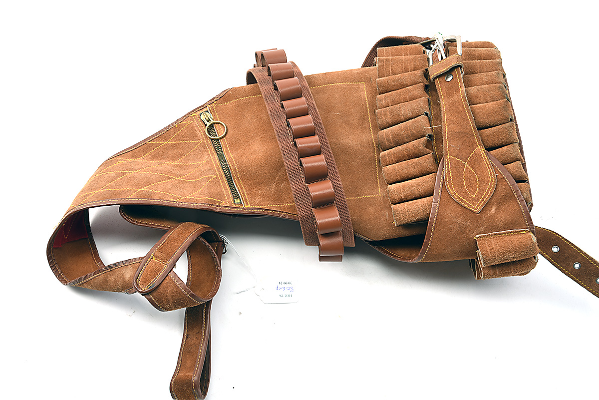 A SUEDE CARTRIDGE VEST AND LEATHER CARTRIDGE BELT