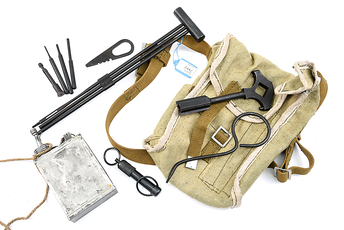AN ISSUE CLEANING KIT FOR A RUSSIAN MAXIM MACHINEGUN complete in its canvas webbing bag