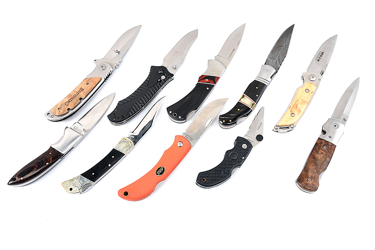 A COLLECTION OF TEN MID-SIZED LOCK-KNIVES, various makers including 'Browning', 'Marttiini', 'Ganzo', 'Nakura', 'Mammut' and 'EKA', some unsigned