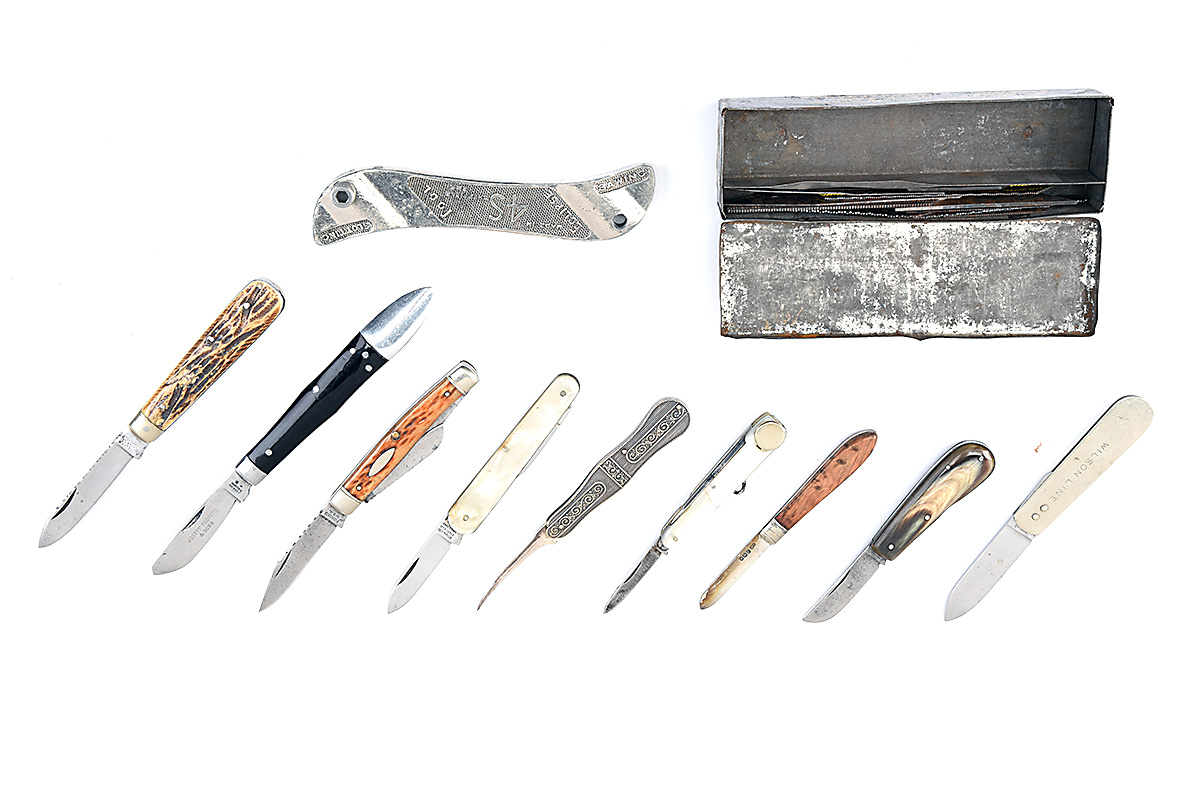 A COLLECTION OF NINE VETERAN POCKET KNIVES TOGETHER WITH AN 'ECLIPSE 4S TOOL', the first all mid 20th century or earlier, some with possible small faults, the last in its original storage tin
