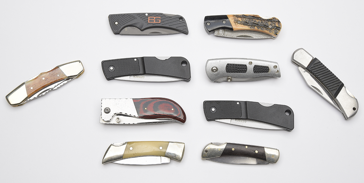 A COLLECTION OF TEN SMALLER LOCK-KNIVES, including Gerber, the largest 3 1/2in. closed