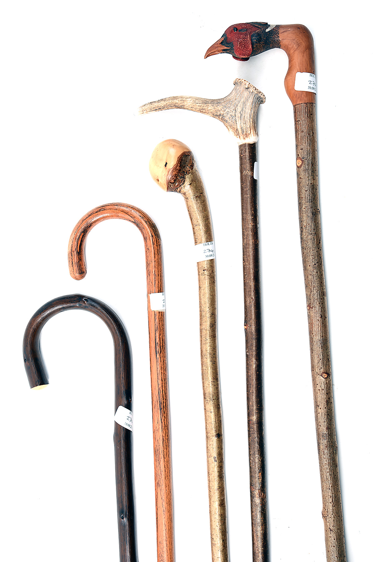 A COLLECTION OF FIVE VARIOUS WALKING STICKS