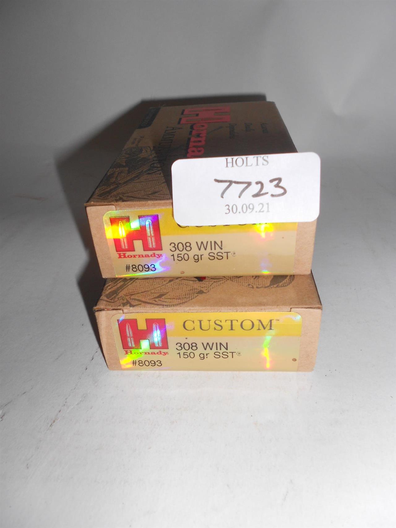 40 ROUNDS .308 WIN 150 grn SST 'CUSTOM' AMMUNITION BY HORNADY #8093 Please be advised that cartridges/ammunition, primers, primed cases, blanks and percussion caps cannot be sent to you by post or carrier. If you wish, you can book a collection at one of our regional valuation days, or collect from our offices at PE31 6HA in Norfolk