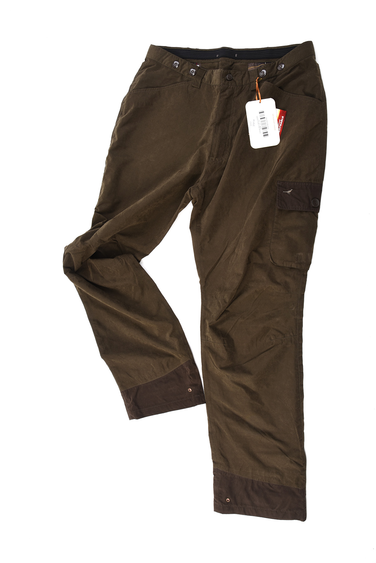 AN UNUSED PAIR OF LAKSEN OLIVE GREEN KUDU HUNTING TROUSERS (SIZE 37)