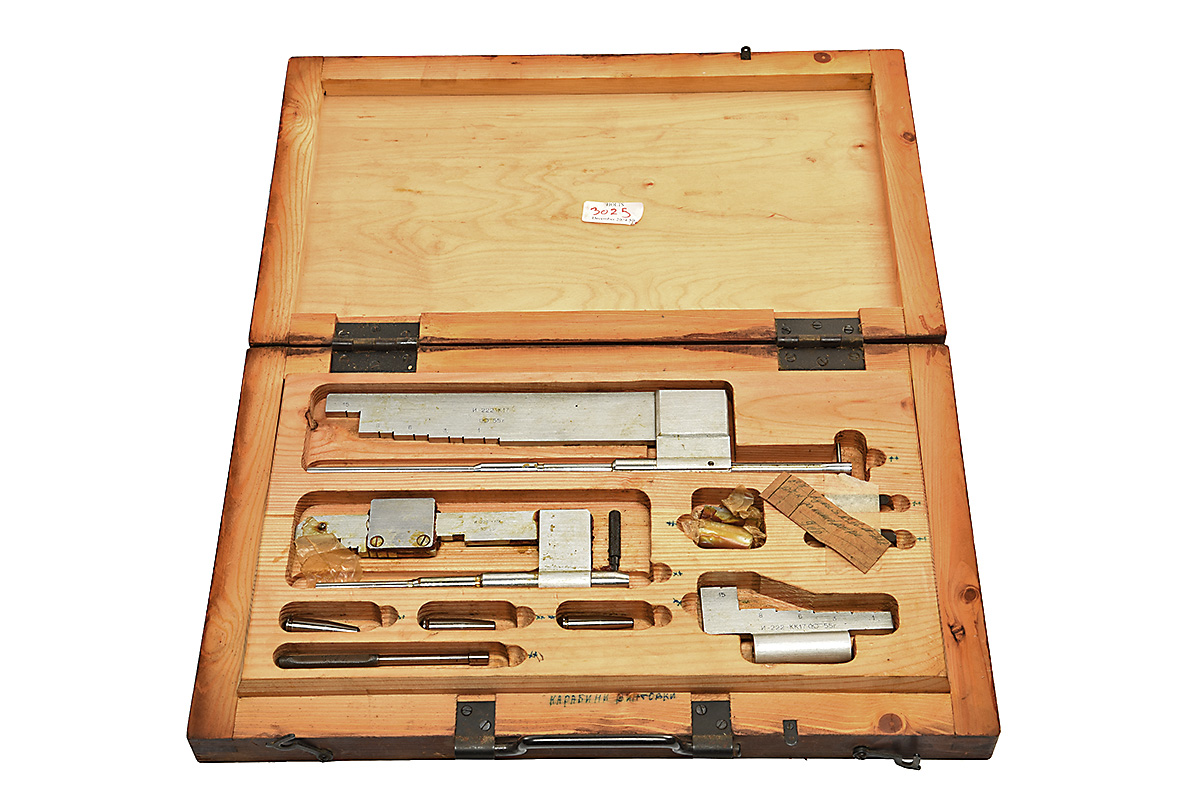A SOVIET ARMOURERS KIT FOR 7.62X54R, armourers gauges & tools in a wooden carry case stamped 56-N-222