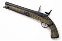 A .577 FLINTLOCK HORSE PISTOL WITH INDIAN DECORATION, UNSIGNED, no visible serial number,