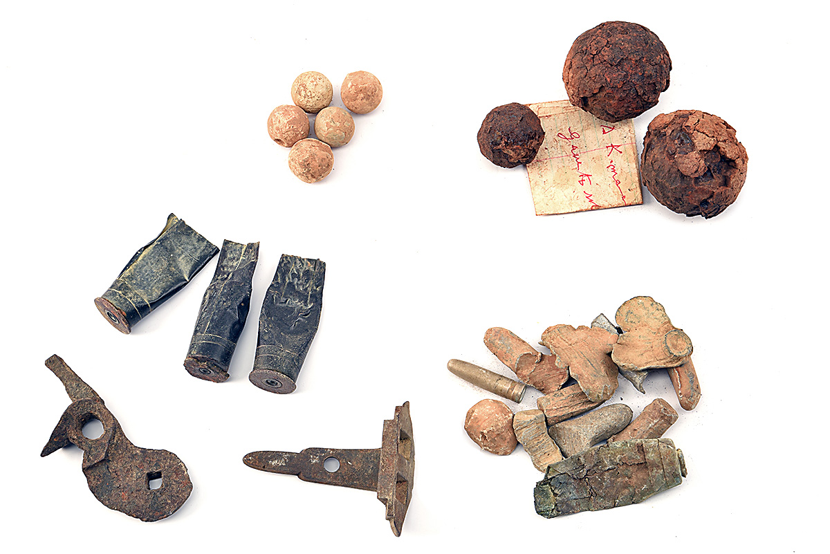 * A MIXED GROUP OF SOUTH AFRICAN PRESUMED BATTLEFIELD PICK-UPS, includes musket parts and balls, martini-henry bullets and cases, x3 iron shrapnel or small cannon balls, etc.; no provenance available or details as to where found