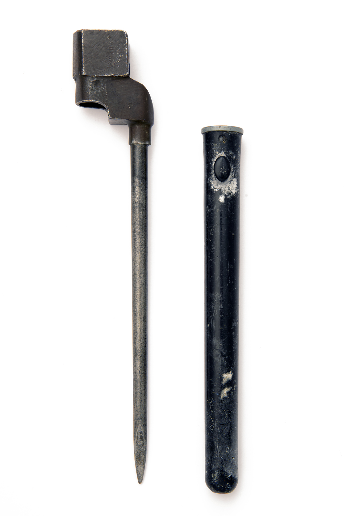 A RARE LEE ENFIELD NUMBER 4 Mk II* BAYONET WITH Mk III PLASTIC SCABBARD, circa 1950s, with 8 in. steel spike, socket marked 'No.4 Mk II* / S&S Ltd', together with its Canadian Arsenals Limited plastic scabbard, this was a limited manufacture for the Korean War, 10 in. overall