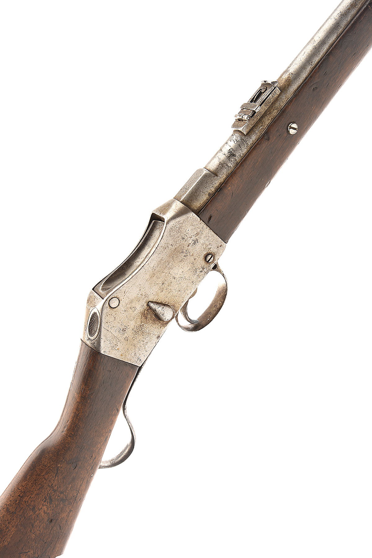 A .577/450 MARTINI HENRY CAVALRY CARBINE SIGNED BRAENDLIN ARMOURY, serial no. 92740, circa 1880, with 21in. Birmingham proofed barrel fitted with a wing protected blade front-sight, and carbine pattern ladder rearsight, the knoxform stamped with the crossed pennants trademark of the Braendlin Armoury, and the action stamped on the left "THE BRAENDLIN ARMOURY CO", iron mounted two piece walnut stock, the barrel and action to a grey patina, complete with original rod, the stock with some wear and bruising commensurate with use.