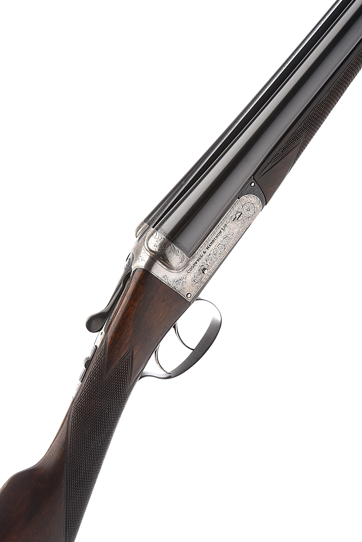 COGSWELL & HARRISON 12-BORE BOXLOCK EJECTOR, serial no. 46153, circa 1913, 30in. nitro barrels (loose), the rib engraved 'COGSWELL & HARRISON LTD. 168, PICCADILLY & 226. STRAND. LONDON & 26. AVENUE DE L'OPERA. PARIS.', 2 1/2in. chambers, bored approx. 1/4 and 1/2 choke, treble-grip action, automatic safety with engraved 'S' detail, border and partial scroll engraving, brushed bright and re-blued finish overall, 14in. figured sock, weight 6lb. 11oz., in a canvas and leather guncase