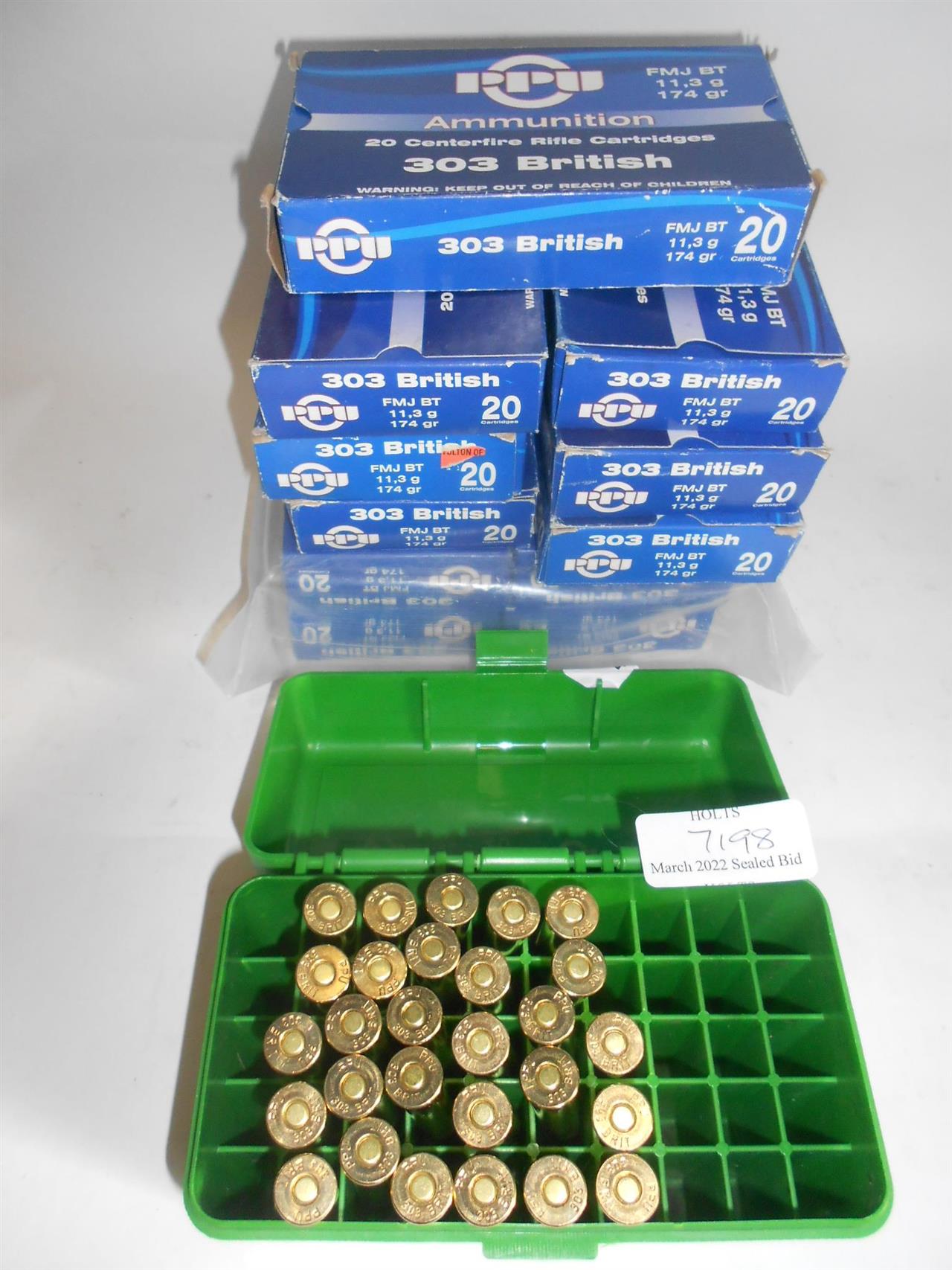 248 ROUNDS .303 174grn< FMJ BT AMMUNITION BY PPU Please be advised that cartridges/ammunition, primers, primed cases, blanks and percussion caps cannot be sent to you by post or carrier. If you wish, you can book a collection at one of our regional valuation days, or collect from our offices at PE31 6HA in Norfolk