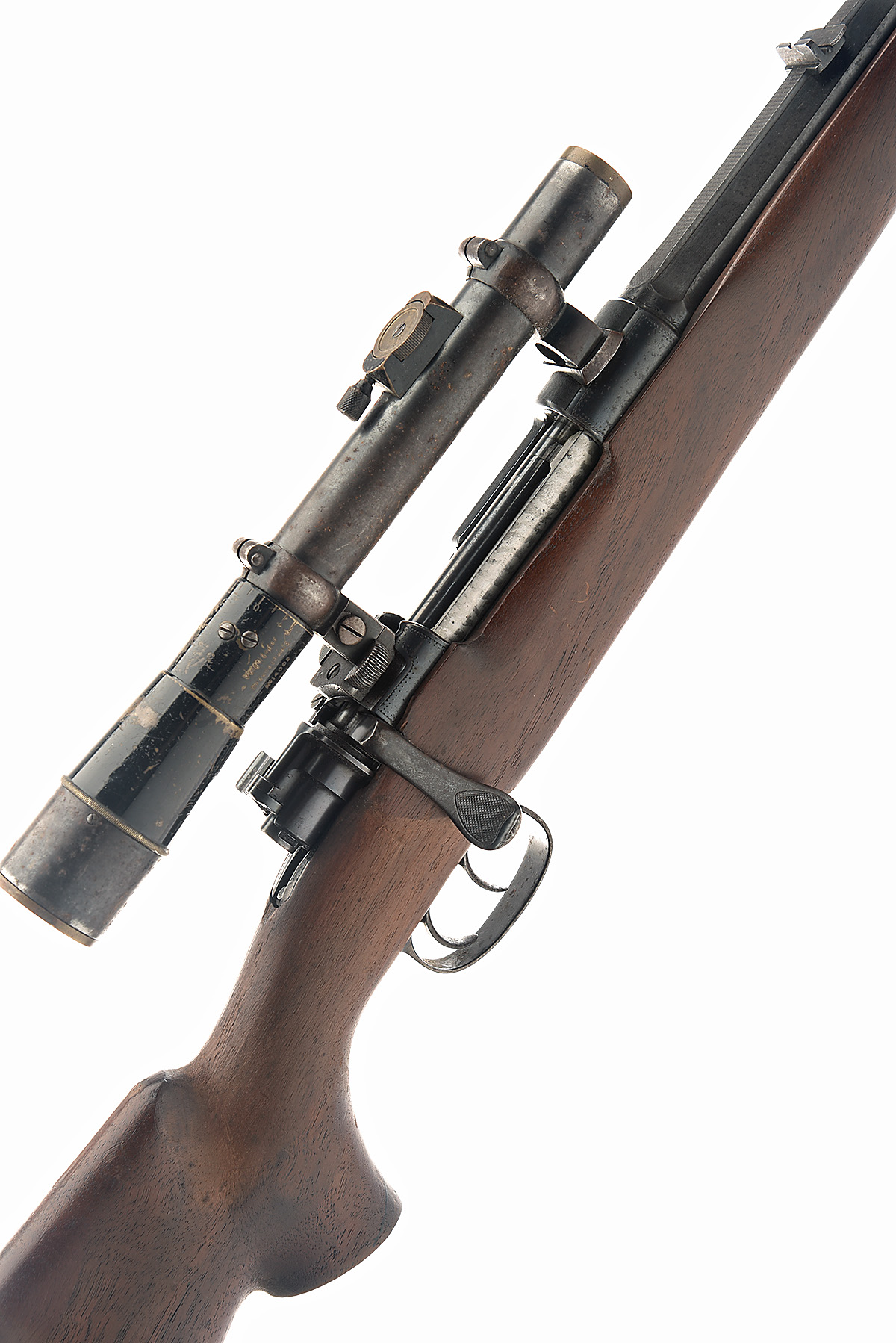 MAUSER 8X57mm BOLT-MAGAZINE SPORTING RIFLE, serial no. 21422, 21 1/2in. nitro barrel, ramp-mounted blade fore-sight, leaf rear-sight, 1 x folding leaf rear-sight, 98 action fitted with a Voigtlander No. 14002 telescopic sight, hinged floorplate, hinged floorplate, pistolgrip stock butt-plate missing, sling swivels