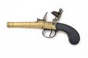 A 40-BORE FLINTLOCK BRASS CANNON-BARRELLED POCKET-PISTOL SIGNED BARBER, no visible serial number,