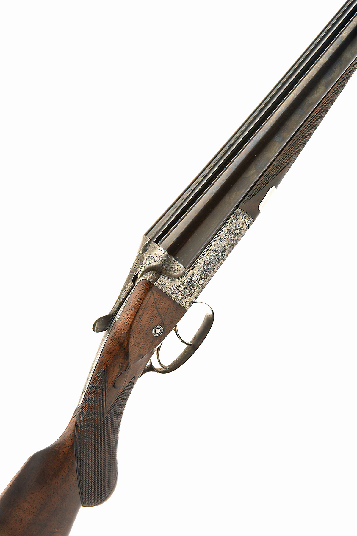 W.R. PAPE 12-BORE BOXLOCK EJECTOR, serial no. 10218, circa 1900, 29in. nitro reproved blacked damascus barrels (in 1988), rib engraved 'W.R. PAPE. NEWCASTLE-ON-TYNE. WINNER OF ALL THE LONDON GUN TRIALS/ 1858. 1859. 1866 & 1875"', 2 1/2in. chambers, bored approx. imp. cyl. and 1/4 choke, treble-grip action, manual side safety, fine acanthus scroll engraving with beaded bordering, 14in. semi-pistolgrip stock with smooth horn buttplate, weight 5lb. 15oz.