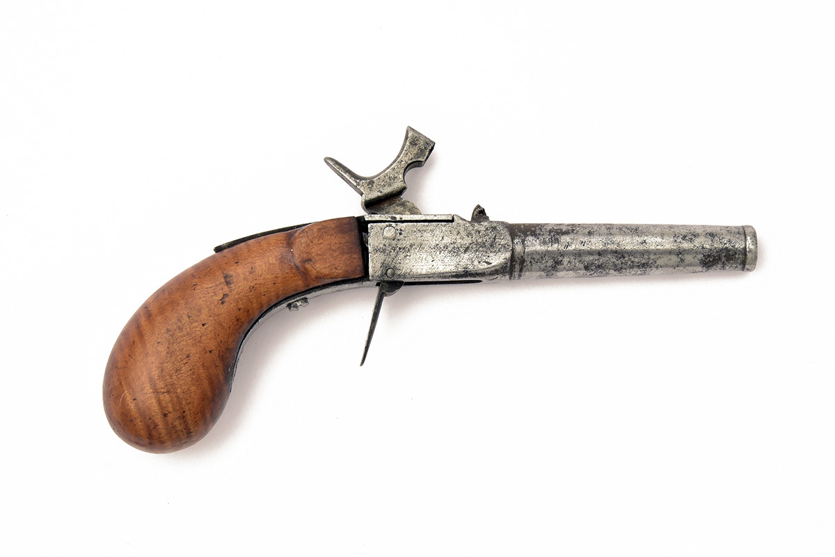 A 180-BORE PERCUSSION MUFF-PISTOL, UNSIGNED, no visible serial number,