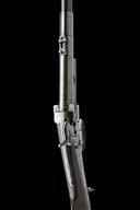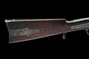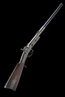dated for 1856, with blued tapering round 18in. barrel, dove-tailed block and blade fore-sight, elevating ladder rear-sight, central section of outer barrel faceted for grip, plain receiver, long plain top-tang marked 'GREENE'S PATENT JUNE 27 1854', back-action lockplate fitted with 'Maynard's' tape priming system and marked 'MASS. ARMS CO. CHICOPEE FALLS USA 1856' a 'VR' crown cypher and 'MAYNARD'S PATENT SEPT 22 1845', plain hammer, walnut butt-stock with iron patch-box and semi-crescent heel-plate, saddle-ring to the trigger-guard tang, large trigger-guard bow with two triggers, the front one unlocking the barrel for loading, British ordnance stamps and no provision for fore-end, the whole with much finish remaining, overall length 34 1/2in., weight approximately 7lbs.
