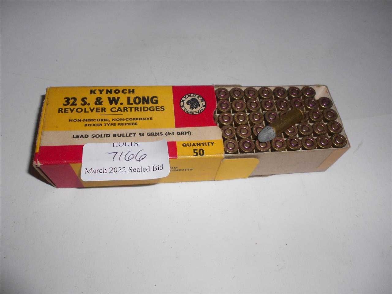 49 ROUNDS .32 S&W REVOLVER LONG BY KYNOCH, 98grn. LEAD ROUND NOSE BULLET Please be advised that cartridges/ammunition, primers, primed cases, blanks and percussion caps cannot be sent to you by post or carrier. If you wish, you can book a collection at one of our regional valuation days, or collect from our offices at PE31 6HA in Norfolk