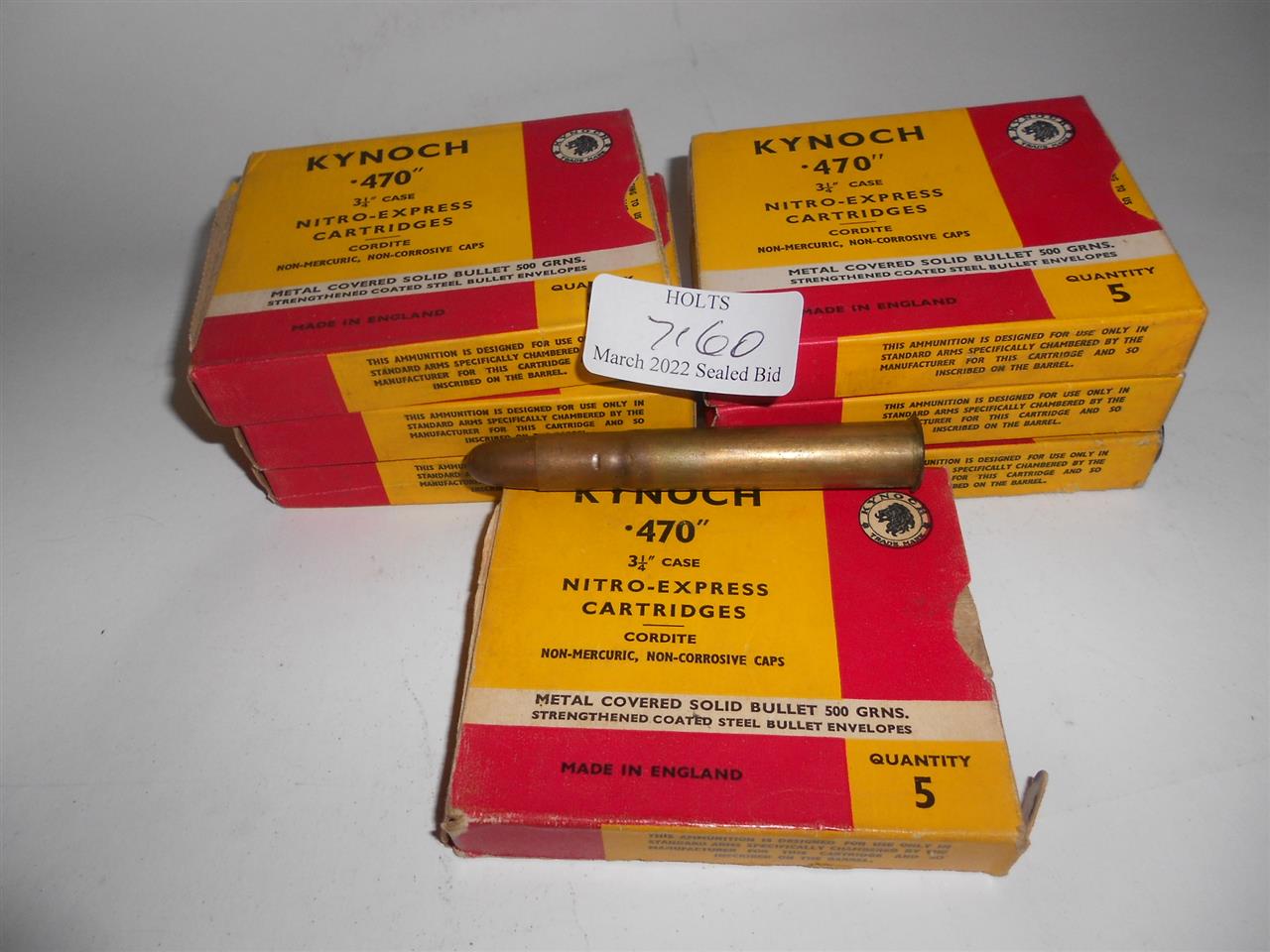 35 ROUNDS .470 x 3 1/4in. KYNOCH CORDITE NITRO EXPRESS , 500 grn SOLID, AMMUNITION, Please be advised that cartridges/ammunition, primers, primed cases, blanks and percussion caps cannot be sent to you by post or carrier. If you wish, you can book a collection at one of our regional valuation days, or collect from our offices at PE31 6HA in Norfolk