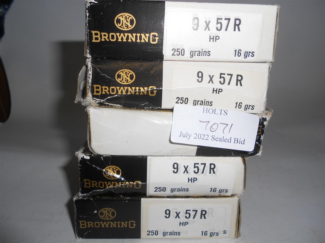 100 ROUNDS 9 x 57R AMMUNITION BY BROWNING, 250grn. LEAD CORE JACKETED HOLLOW POINT, BOXER PRIMED, Please be advised that cartridges/ammunition, primers, primed cases, blanks and percussion caps cannot be sent to you by post or carrier. If you wish, you can book a collection at one of our regional valuation days, or collect from our offices at PE31 6HA in Norfolk