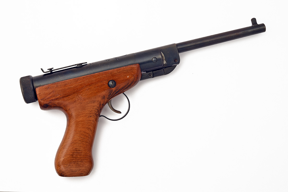 A .177 SLAVIA ZVP BREAK-BARREL AIR-PISTOL, serial no. 34947, with blued 7 1/4in. barrel, blued air-chamber and one-piece smooth wood grip, generally collector's external condition