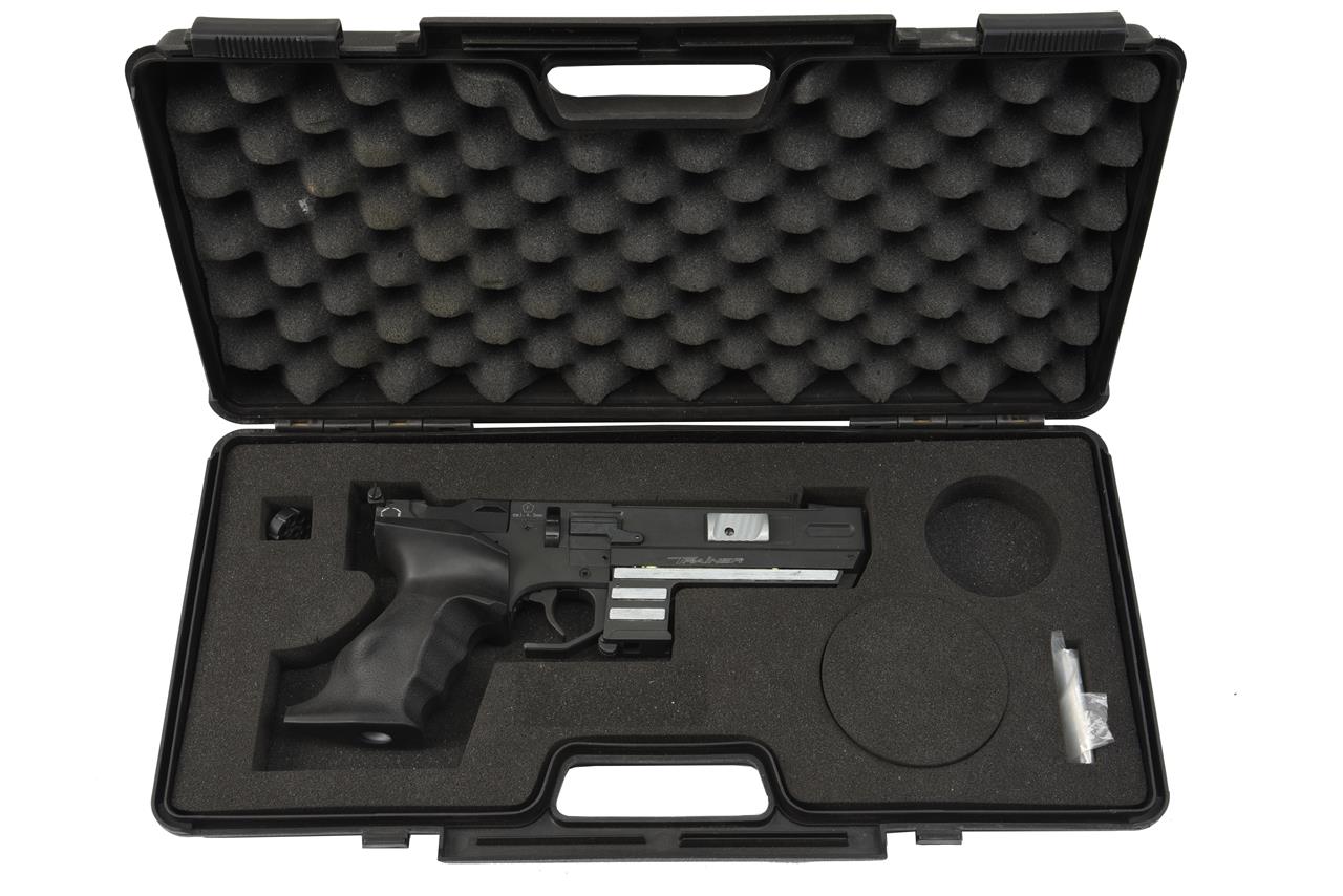A CASED ROHM TWINMASTER .177 CO2 TRAINER AIR-PISTOL, serial no.  0580376, with 6in. barrel, revolving magazine, match double action trigger, moulded anatomical ambidextrous grip, appearing little used (untested) in its maker's abs plastic case with some accessories