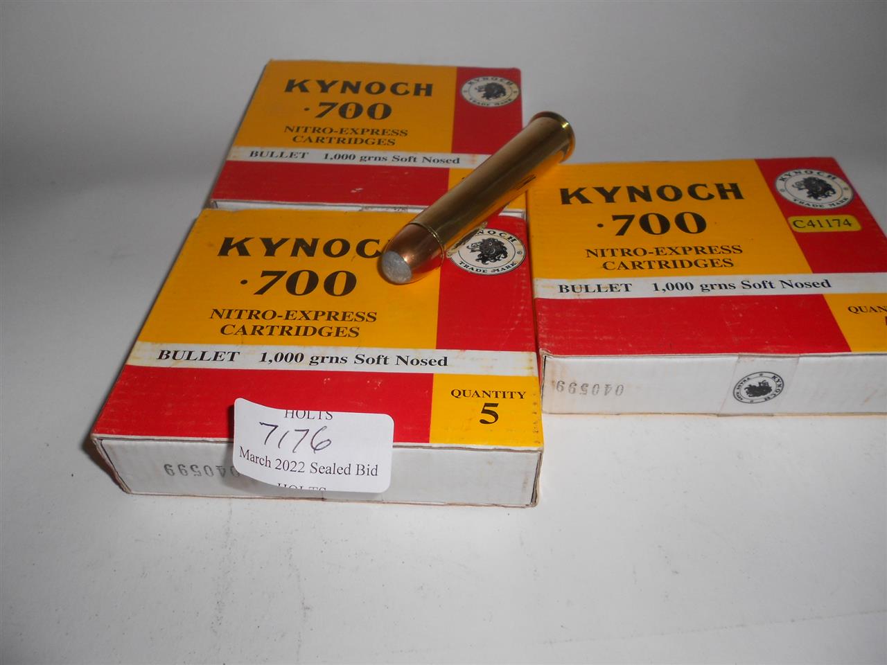 15 ROUNDS .700 NITRO EXPRESS BY KYNOCH, 1000grn, SOFT NOSE Please be advised that cartridges/ammunition, primers, primed cases, blanks and percussion caps cannot be sent to you by post or carrier. If you wish, you can book a collection at one of our regional valuation days, or collect from our offices at PE31 6HA in Norfolk