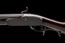 made for export circa 1850, with round 39in. browned barrel, Tower proofs (?), hooked breech, bead fore-sight, shallow sighting groove to the top-tang, square-fronted borderline engraved bar-action lock signed 'SAMUEL MOORE, WARRANTED' below the drum and nipple, sparse acanthus leaf engraved detail, walnut half-stock chequered at the wrist, iron furniture except white metal escutcheon behind top-tang, barrel-key escutcheons and ramrod throat and original under-barrel ramrod (worm tip missing)