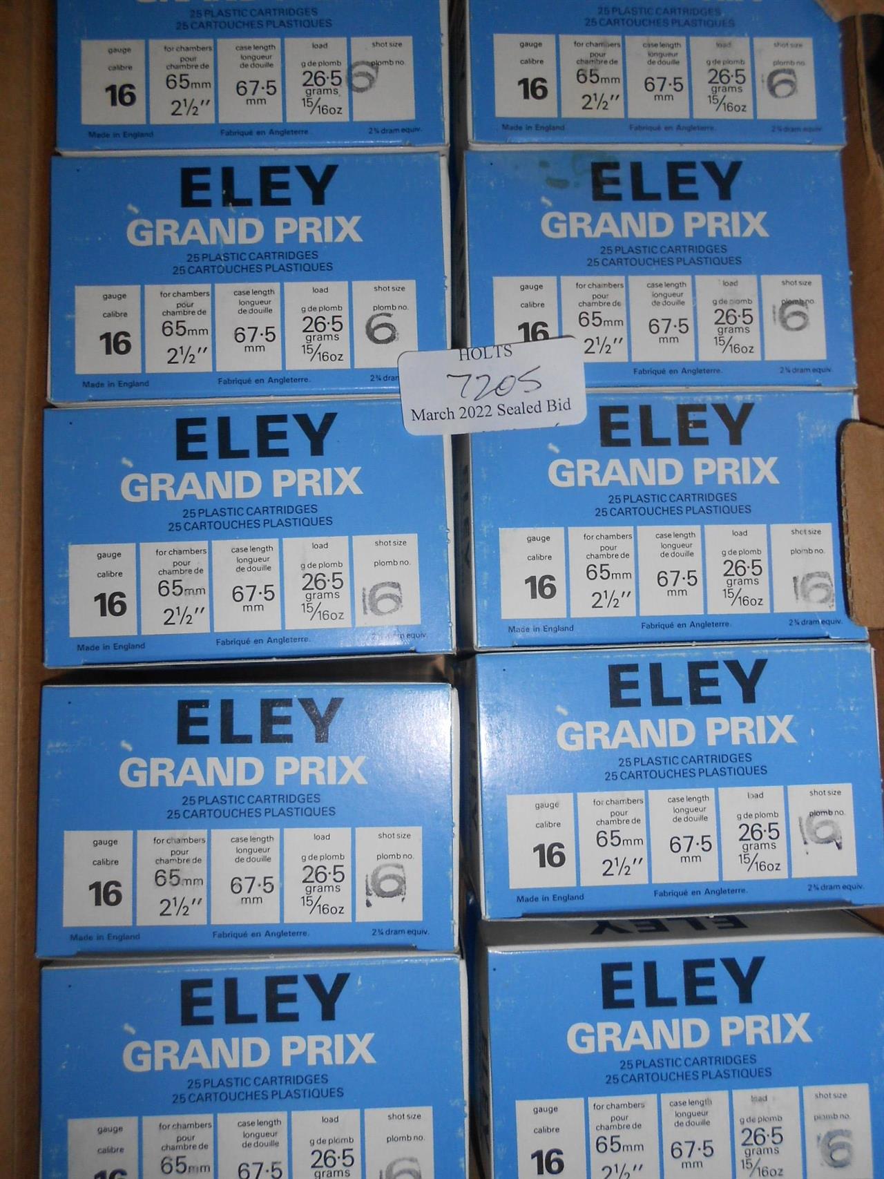 250 ELEY 16 BORE 65mm, 26.5grm, 6 SHOT, FIBRE WAD Please be advised that cartridges/ammunition, primers, primed cases, blanks and percussion caps cannot be sent to you by post or carrier. If you wish, you can book a collection at one of our regional valuation days, or collect from our offices at PE31 6HA in Norfolk