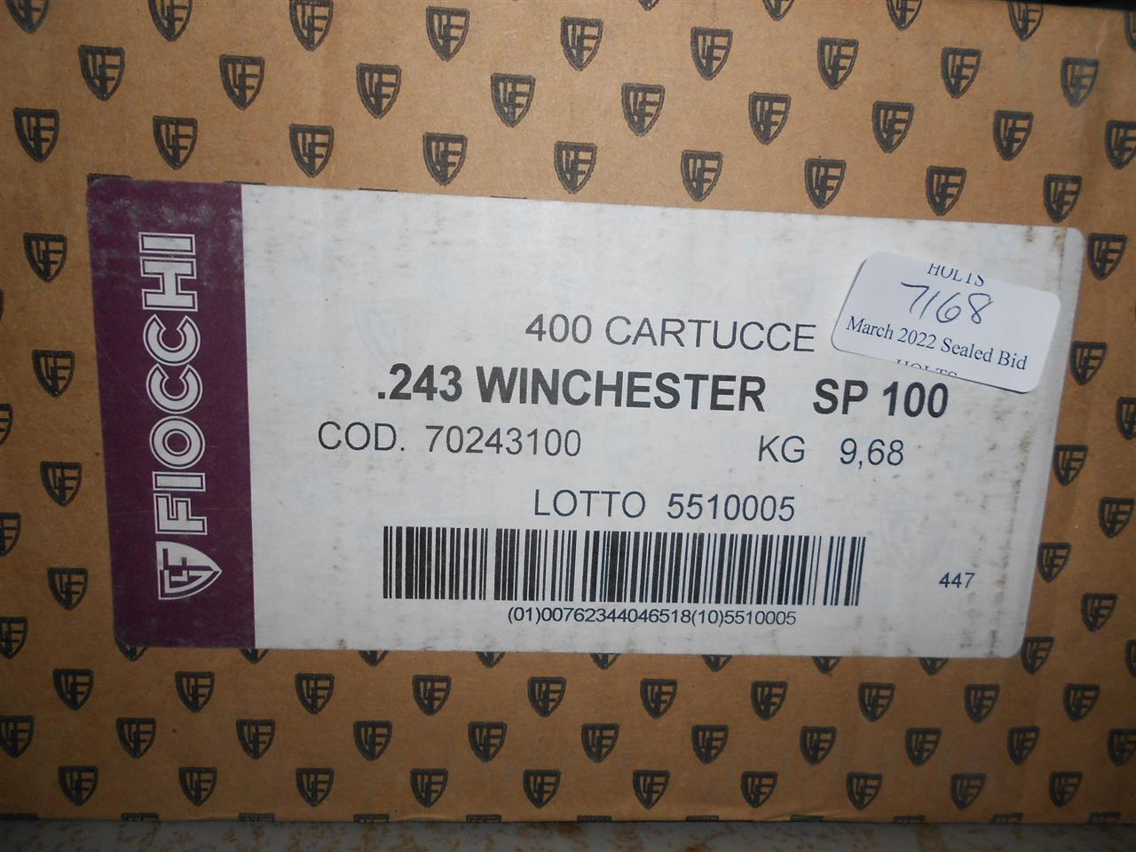 400 ROUNDS .243 WIN AMMUNITION 100grn PSP 2925fps BY FIOCCHI USA Please be advised that cartridges/ammunition, primers, primed cases, blanks and percussion caps cannot be sent to you by post or carrier. If you wish, you can book a collection at one of our regional valuation days, or collect from our offices at PE31 6HA in Norfolk