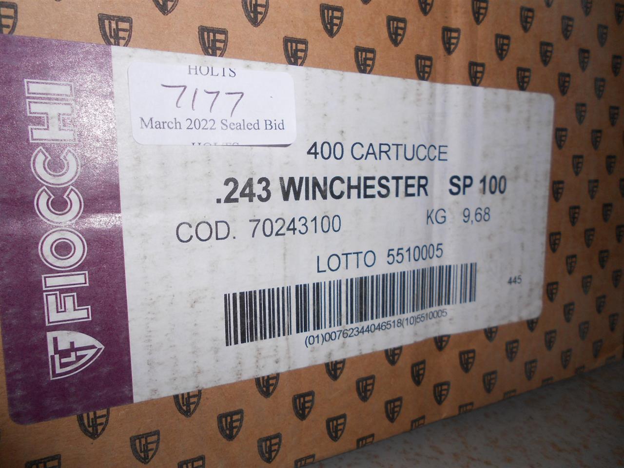 400 ROUNDS .243 WIN AMMUNITION 100grn PSP 2925fps BY FIOCCHI USA Please be advised that cartridges/ammunition, primers, primed cases, blanks and percussion caps cannot be sent to you by post or carrier. If you wish, you can book a collection at one of our regional valuation days, or collect from our offices at PE31 6HA in Norfolk