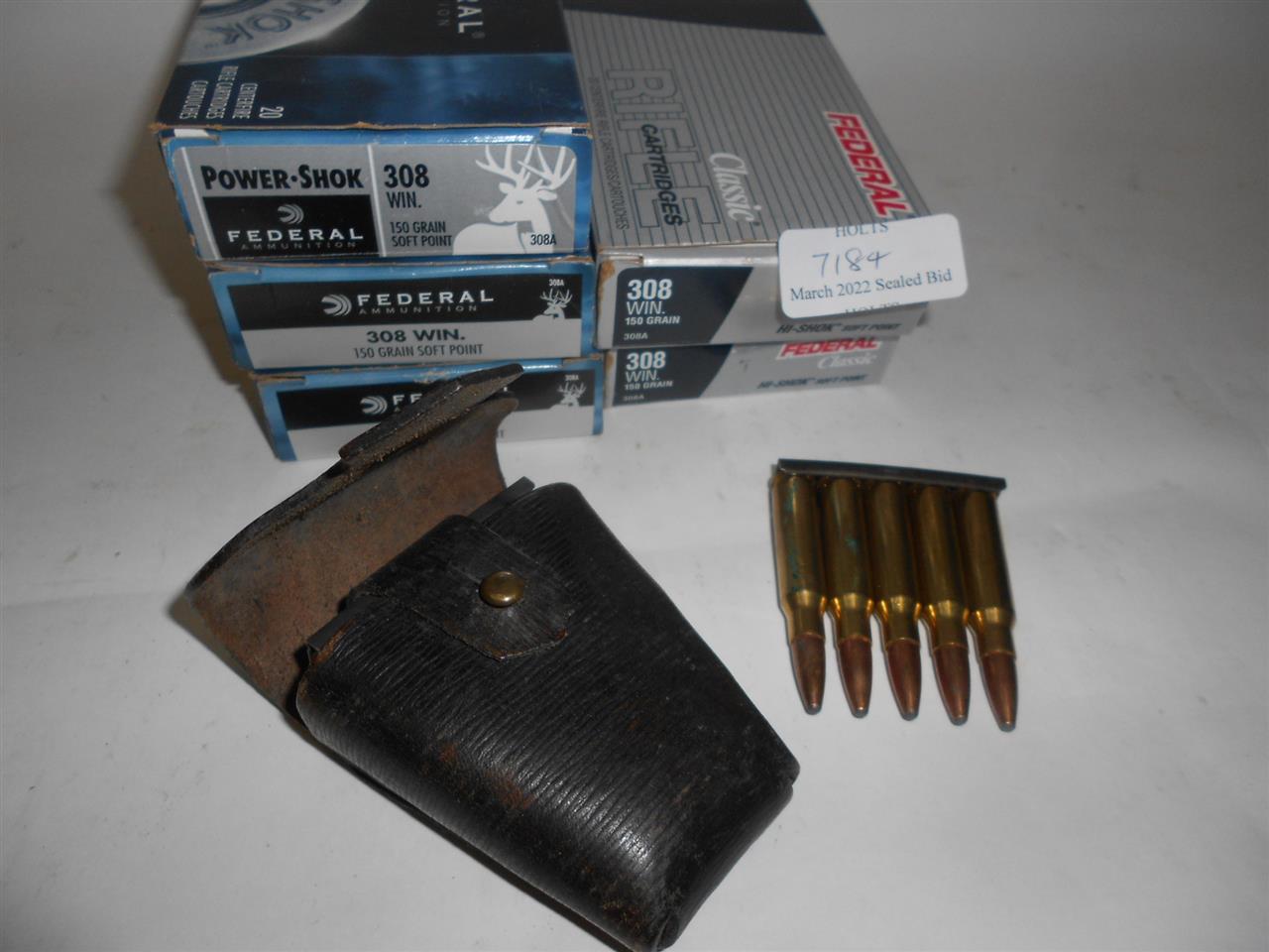 97 ROUNDS .308 WIN (7.62 X 51) AMMUNITION BY FEDERAL, SOME IN A LEATHER BELT POUCH, comprising of:
