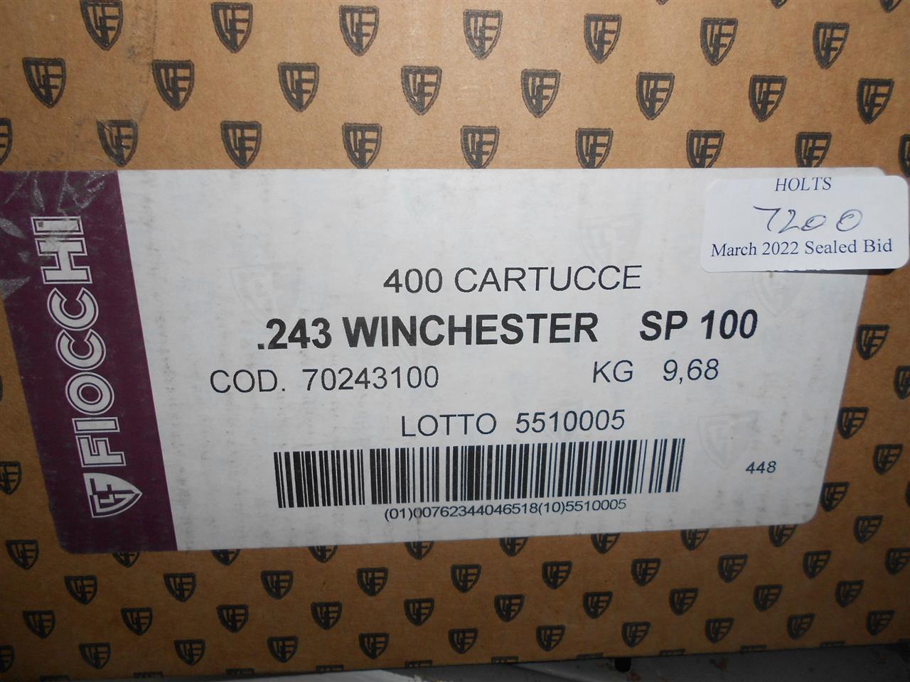 400 ROUNDS .243 WIN AMMUNITION 100grn PSP 2925fps BY FIOCCHI USA Please be advised that cartridges/ammunition, primers, primed cases, blanks and percussion caps cannot be sent to you by post or carrier. If you wish, you can book a collection at one of our regional valuation days, or collect from our offices at PE31 6HA in Norfolk