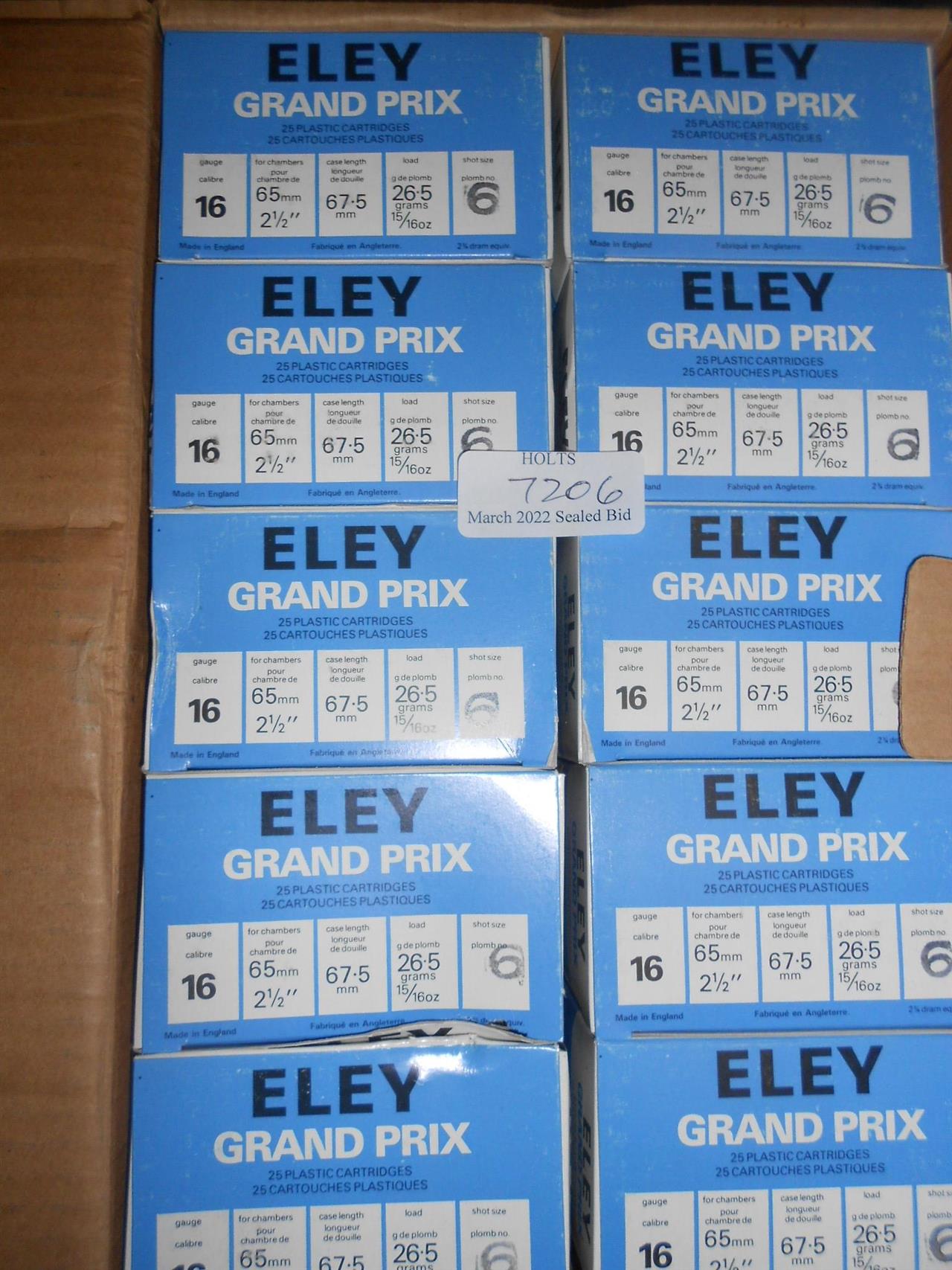 250 ELEY 16 BORE 65mm, 26.5grm, 6 SHOT, FIBRE WAD Please be advised that cartridges/ammunition, primers, primed cases, blanks and percussion caps cannot be sent to you by post or carrier. If you wish, you can book a collection at one of our regional valuation days, or collect from our offices at PE31 6HA in Norfolk