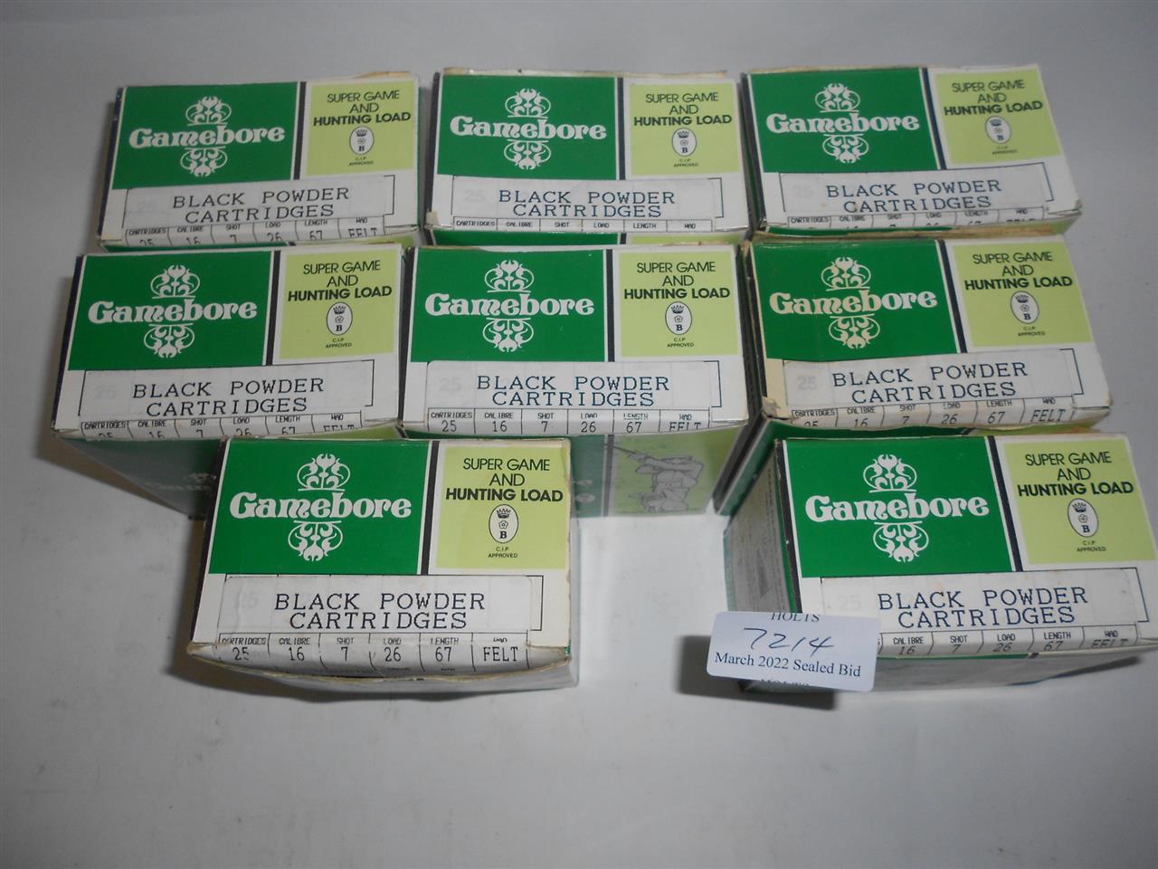 200 GAMEBORE 16 BORE BLACK POWDER CARTRIDGES, 67mm, 26grm,
