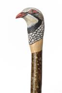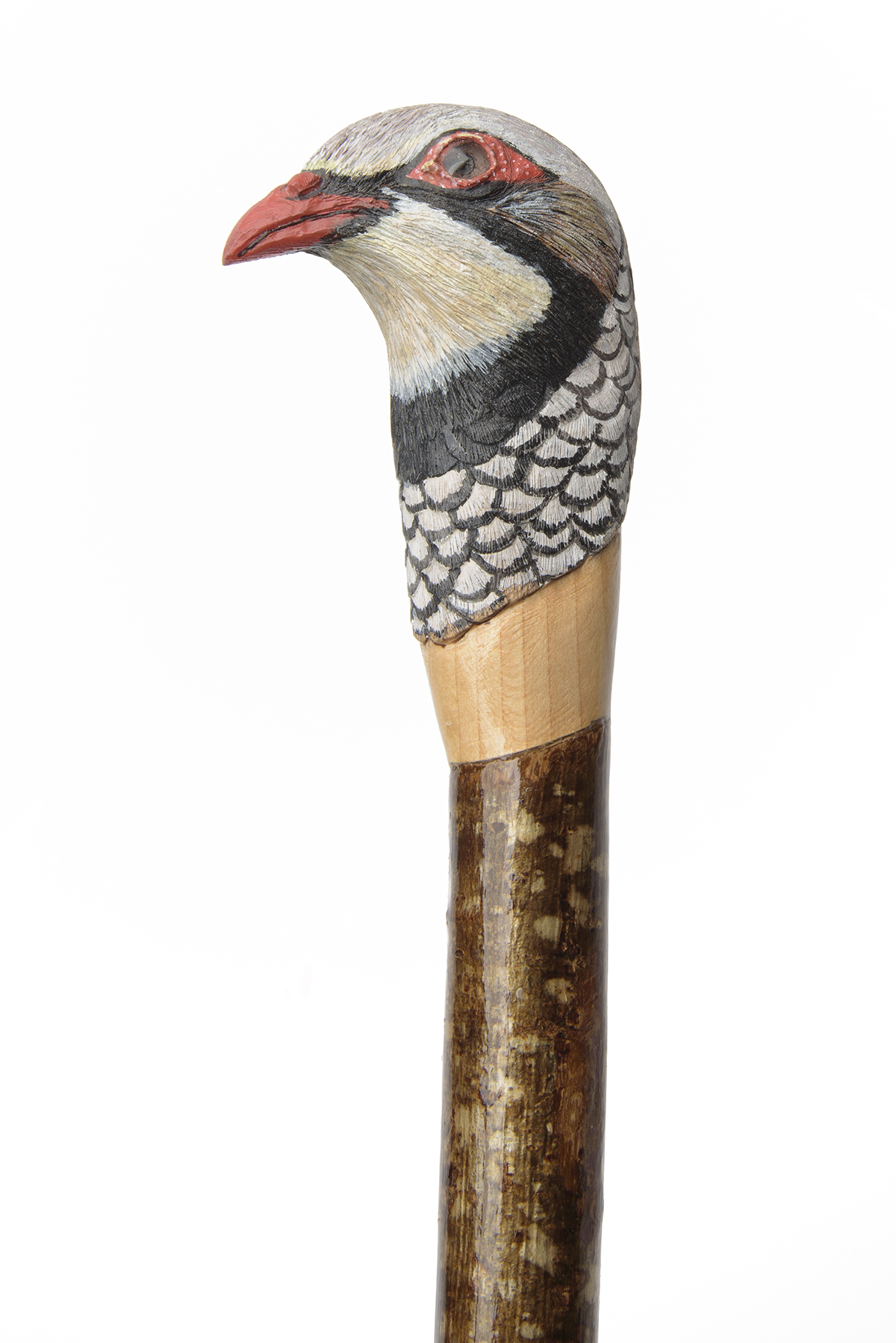 measuring approx. 54in. in length, hardwood shaft, bone ferrule, the head carved and painted in the form of a French partridge