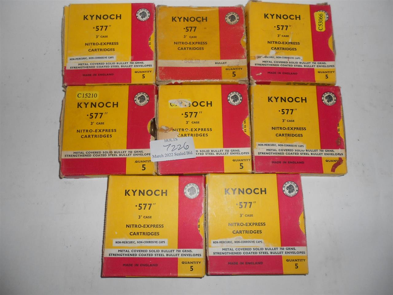40 ROUNDS .577 3in. AMMUNITION BY KYNOCH, Please be advised that cartridges/ammunition, primers, primed cases, blanks and percussion caps cannot be sent to you by post or carrier. If you wish, you can book a collection at one of our regional valuation days, or collect from our offices at PE31 6HA in Norfolk