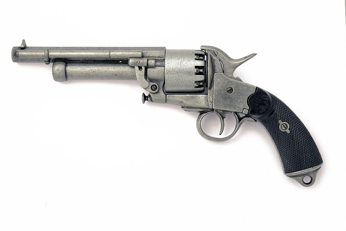 AN INERT DIE-CAST REPRODUCTION OF A LE-MAT PERCUSSION COMBINATION REVOLVER,