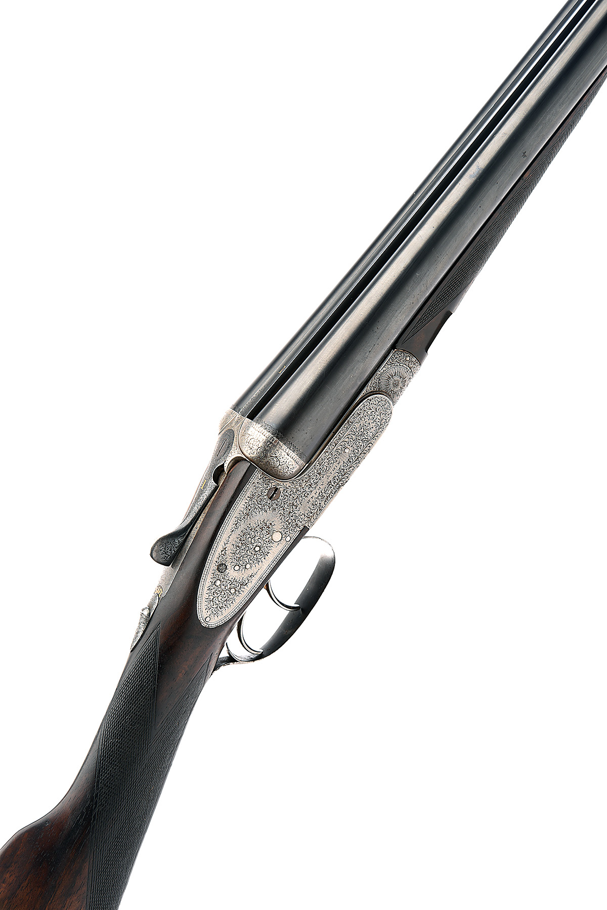 HENRY ATKIN 12-BORE SIDELOCK EJECTOR, serial no. 1612, circa 1910, 30in. nitro barrels, the rib engraved 'HENRY ATKIN (FROM PURDEY'S) 88 JERMYN STREET. LONDON.', and with acanthus scroll detailing and gold-inlaid '1' at the breech-end, 2 1/2in. chambers, bored approx. 1/4 and 1/2 choke, (right bore marginal, both walls at 14 thou), toplever gold-inlaid '1', automatic safety with gold-inlaid 'SAFE' detail, border and acanthus scroll engraving, the action flats stamped 'E.C. HODGES', bright finish, 14 3/4in. figured stock with later applied leather cheekpiece, weight 6lb. 5oz.