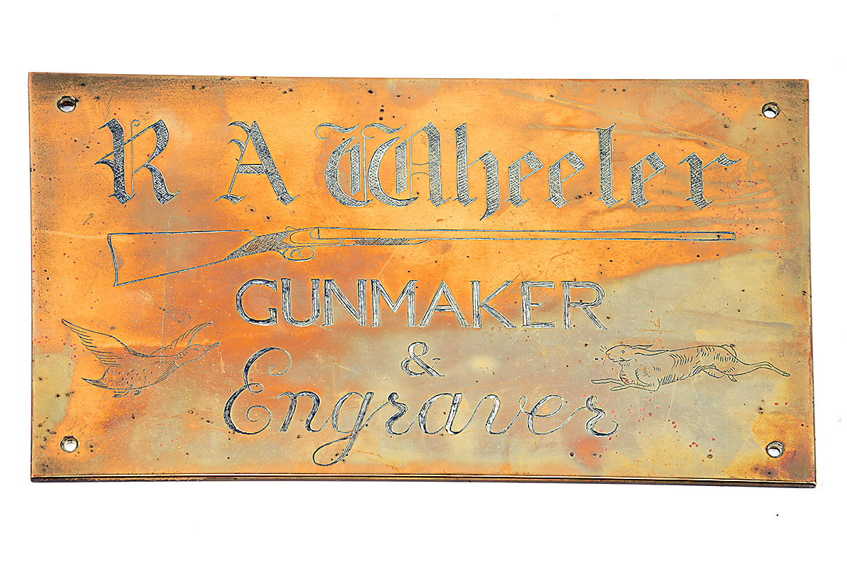 A R.A. WHEELER GUNMAKER & ENGRAVERS BRASS PLAQUE,