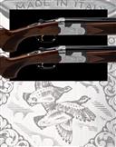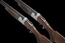 for 1997, 28in. nitro barrels with 6mm ventilated matt top-rib, 3in. chambers, bored approx. imp. cyl. and 1/4 choke, in both, hold-open toplevers, automatic safeties with integral barrel-selector switches, gold-washed triggers, border and acanthus scroll engraving surrounding vignettes of duck and partridge, bright and blued finish, 15 1/4in. pistolgrip stocks including leather covered rubber recoil pads, weight 6lb. 7oz., in a double canvas slip