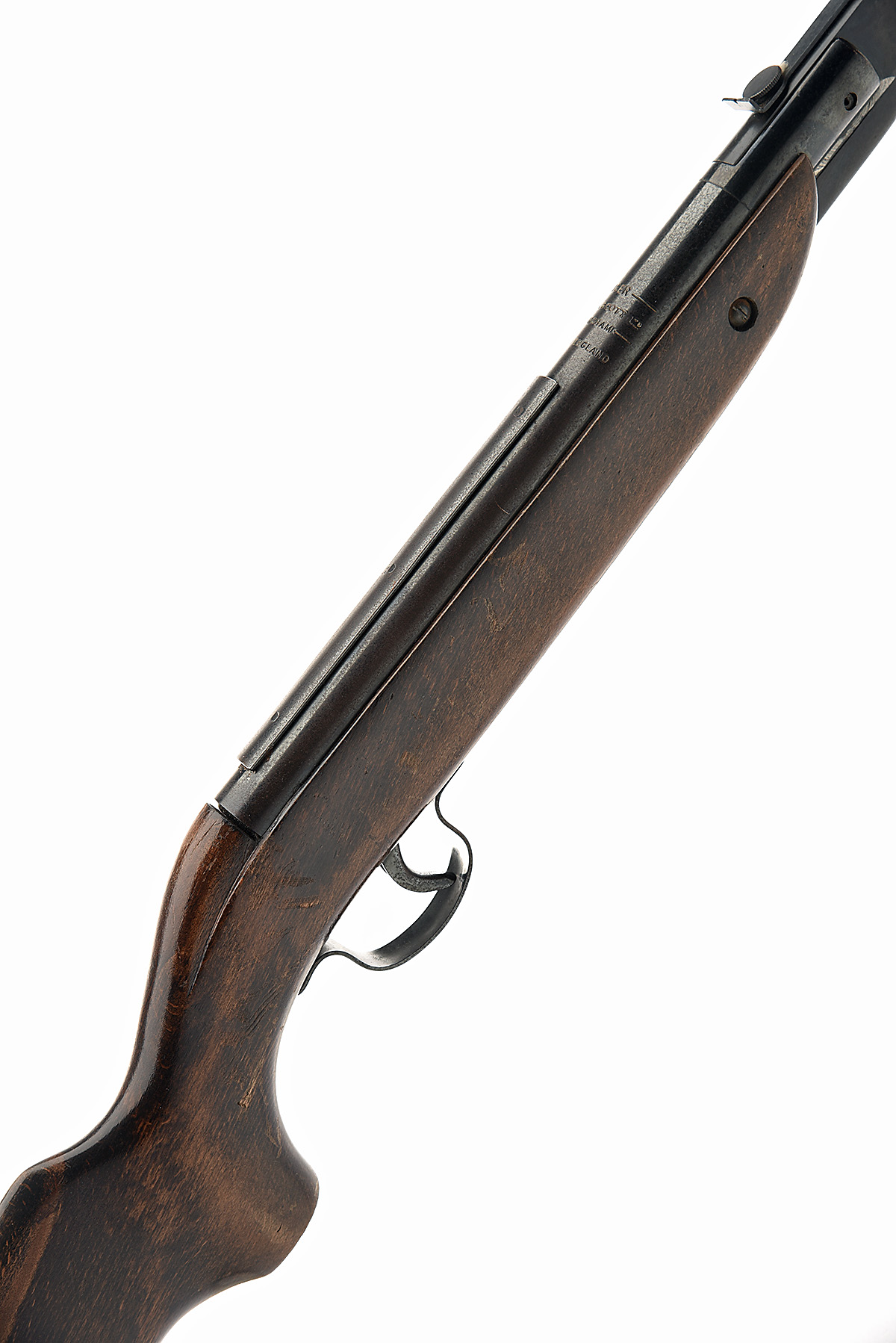 A WEBLEY & SCOTT .177 RANGER AIR RIFLE, batch no. 1769, with sighted 16in. barrel, plain air-chamber with applied telescopic sight rail and beech half-stock