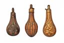 A GROUP OF SIX POWDER FLASKS FOR SPORTING GUNS,