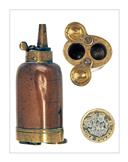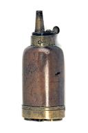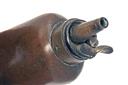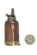 circa 1840, unsigned, working original spring, spout unscrews, base with double swinging circular covers, copper body, 3in. including spout, Riling reference 138