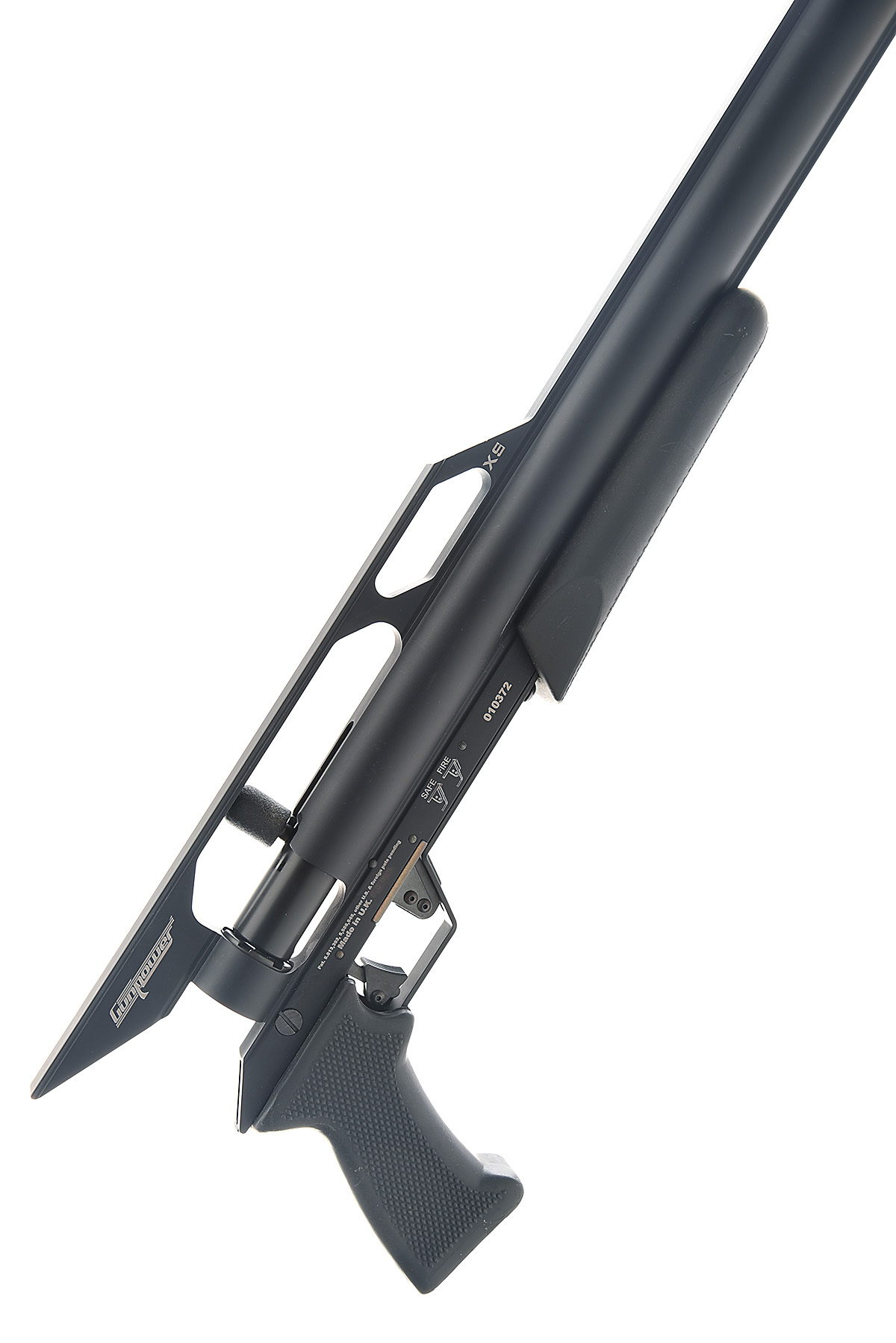 A BOXED .22 FAC RATED AIR RIFLE SIGNED GUNPOWER MODEL XS FAC Serial no 010372,