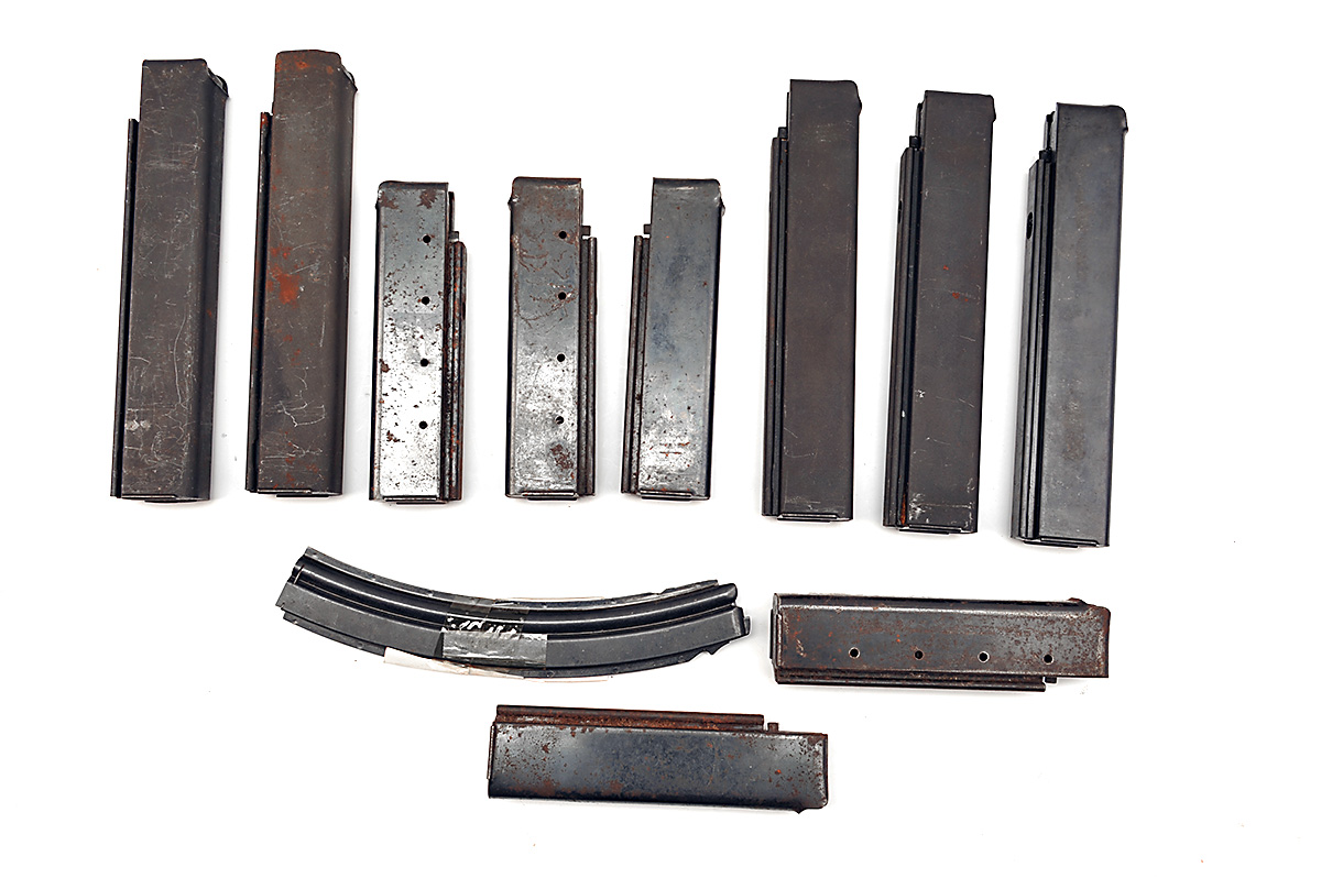 A GROUP OF 10 STICK MAGAZINES FOR THE THOMPSON SUB-MACHINE GUN, PLUS A .22 CONVERSION KIT MAG,