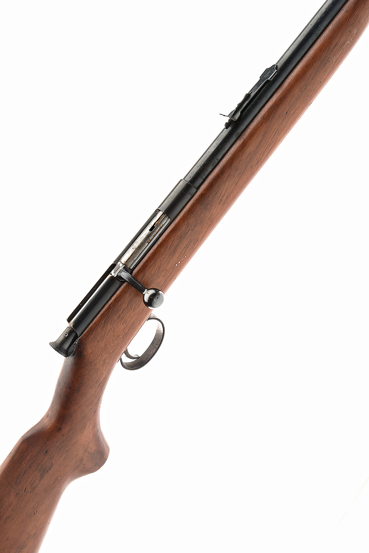 B.S.A. .22 L.R. 'SPORTSMAN FIFTEEN' BOLT-MAGAZINE SPORTING RIFLE, serial no. LE48345, circa 1953, 25 1/4in. nitro barrel, blade fore-sight, leaf rear-sight, no safety, tubular magazine, pistolgrip stock, green canvas sling